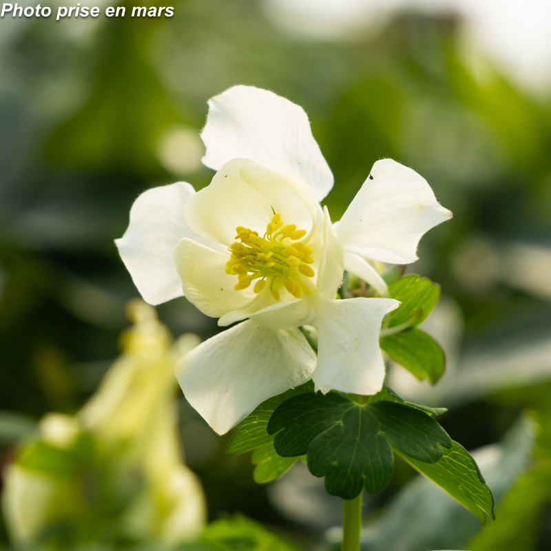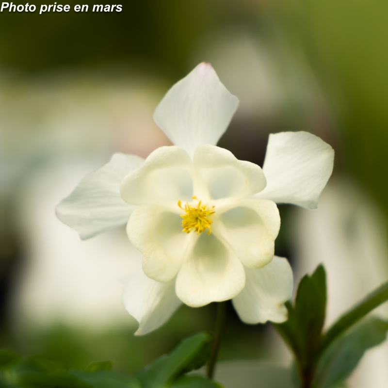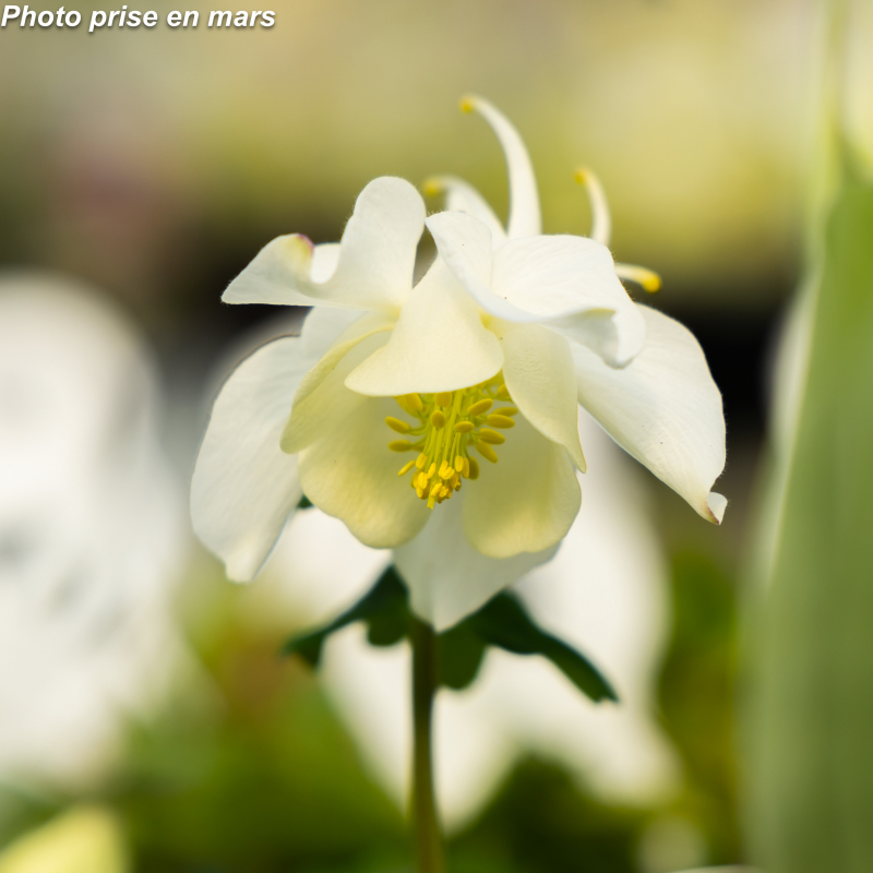 Plante vivace peu exigeante, l’Aquilegia caerulea ‘Spring Magic White’ se ressème spontanément d’année en année.