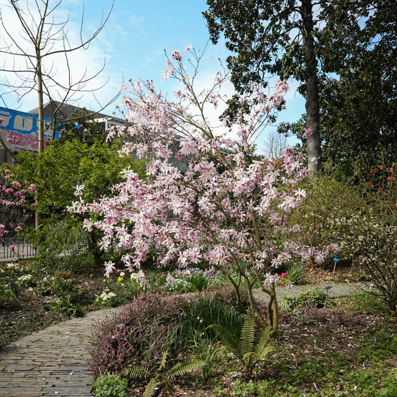 Le Magnolia 'Leonard Messel' est une plante résistante mais apprécie un environnement protégé des vents froids pour une floraison plus abondante.
