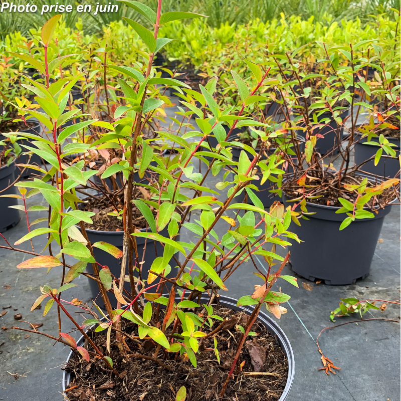 L’Hypericum patulum ‘Hidcote’ est une variété de plante vivace de la famille des Clusiacées. De petite taille, il mesure environ 1,50 m de haut pour une envergure de 1,50 m. Originaire d’Asie et d’Europe, il est extrêmement rustique et peut rester en terre jusqu’à -20 °C. Durant la période de floraison, son feuillage vert foncé se recouvre de magnifiques fleurs jaune vif d’environ 5 cm de diamètre. Ces dernières sont regroupées en grappes à l’extrémité des tiges.