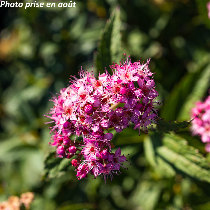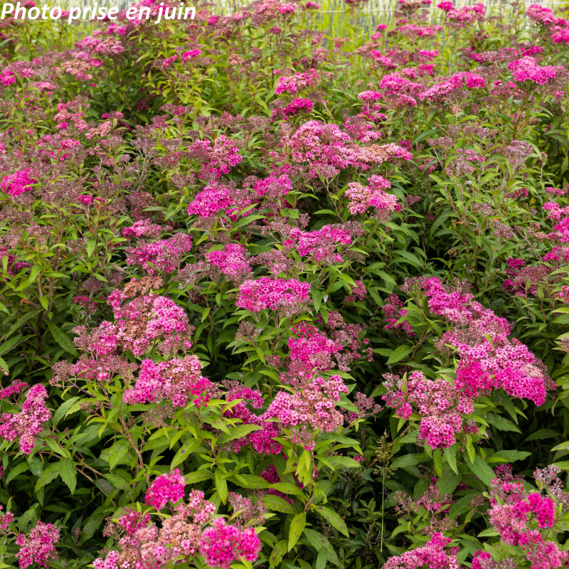 Arbuste caduc au feuillage rouge pourpre à la naissance devenant vert foncé, fleurs en ombelles plates rose-pourpré de juillet à septembre. Soleil. Sol ordinaire. Port arrondi : 1 m x 0. 80 m. Rusticité : -20°C.