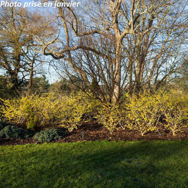 Bel arbuste à floraison hivernale et au feuillage flamboyant à l'automne .