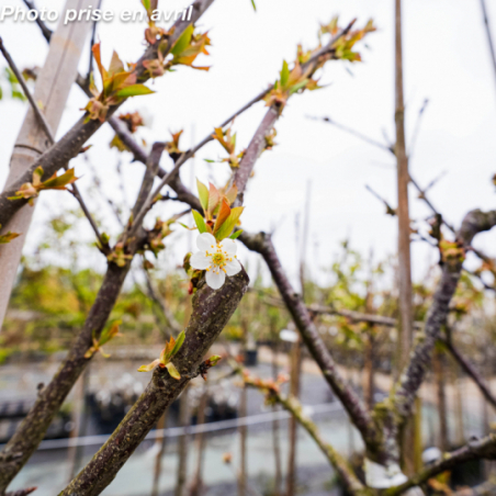 À déploiement tardif (en avril), ses fleurs échappent aux gelées printanières. Sa floraison dense recouvre ce cerisier d’un manteau de petites fleurs blanches très décoratives et parfumées.