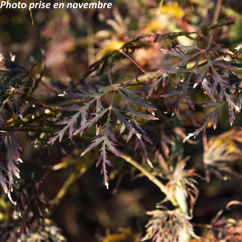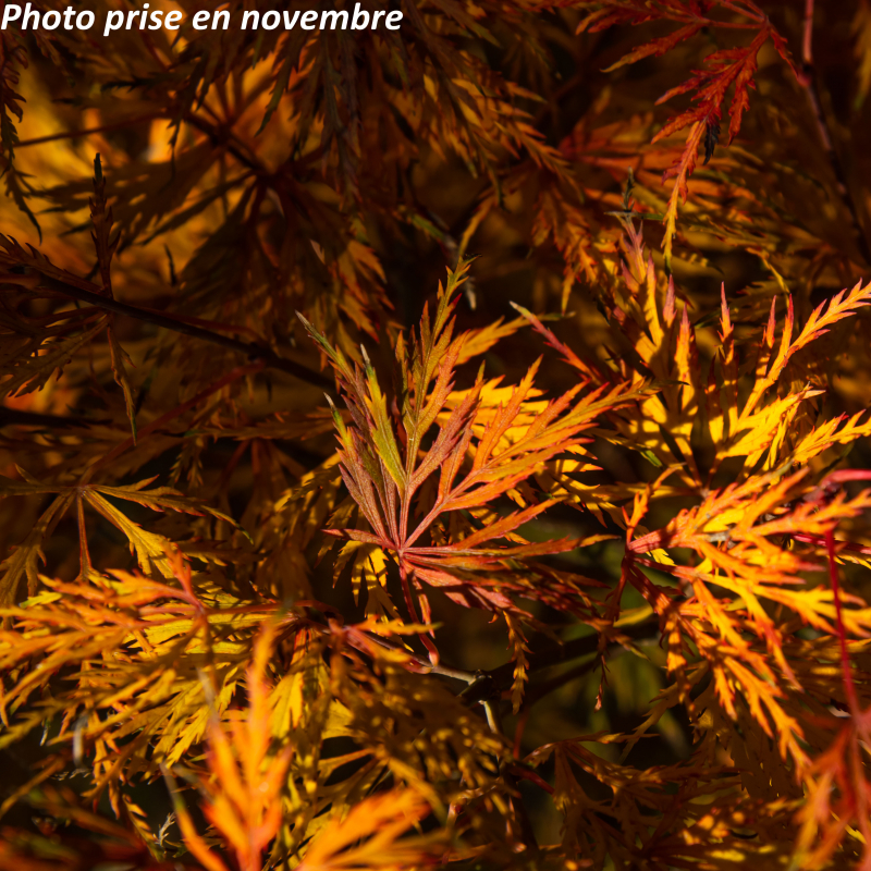 L’Acer palmatum 'Emerald Lace' est une variété d’Érable du Japon séduisant par son port gracieux et surtout par son feuillage rouge orangé qui égaye le jardin en automne. Ce cultivar américain 'Emerald Lace' est dérivé de la variété principale Acer palmatum.