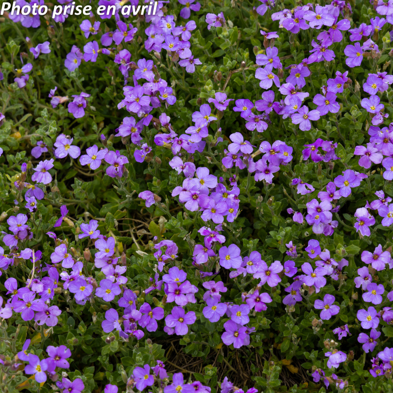 Vivace au feuillage persistant vert. Floraison abondante en petites fleurs caractéristiques bleu violacé de mars à juin.