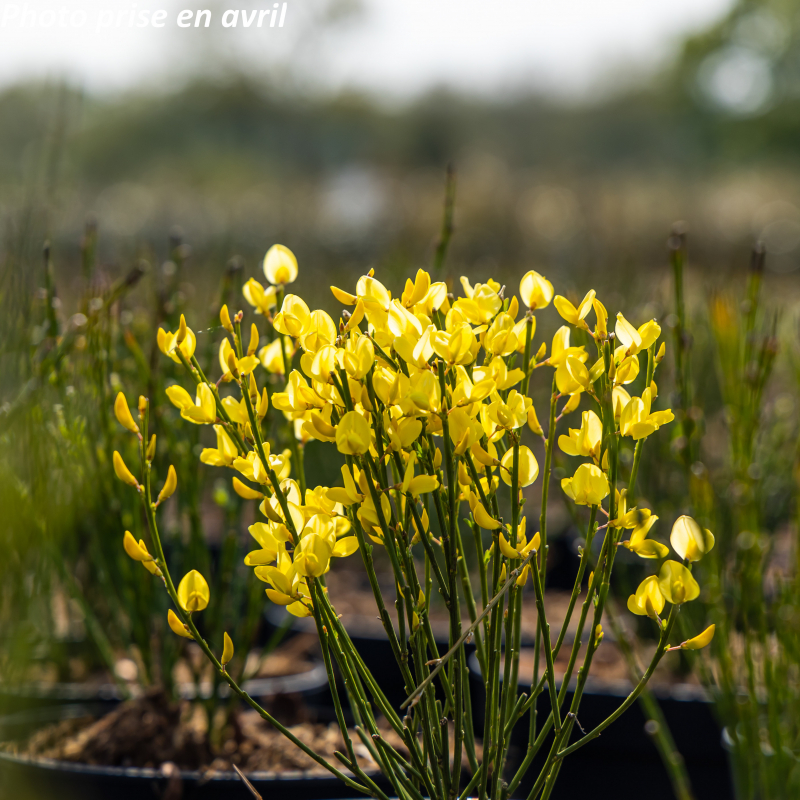 Petit arbuste dressé à fines tiges arquées et à feuilles caduques. Les rameaux restant verts toute l'année portent au printemps des fleurs de 1 à 2 cm de long, jaune foncé, avec les ailes et le revers de l'étendard rouge. Floraison de mai à juin. Soleil à mi-ombre. Sol sain, drainé, frais. Port arbustif : 1 à 1.50m Rusticité : - 10°C