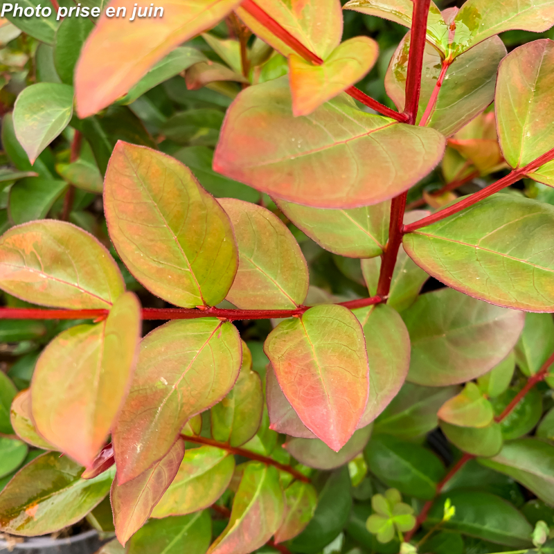 Très bel arbuste aux tiges rouges et aux rameaux striés ou zébrés. Feuillage vert caduc décoratif devenant rouge orangé à l'automne. Très gros bouquets de fleurs d'un beau rouge lumineux, parfumées. Abondante floraison de juin à octobre. Exposition : plein soleil, à l'abri du vent. Sol ordinaire à léger, sans trop de calcaire, sain, draîné, frais. Surtout pas d'humidité stagnante. Port érigé : 3 m x 2,50 m. Rusticité : - 8°C. Protéger les jeunes plants des gelées inférieures à -5°C.
