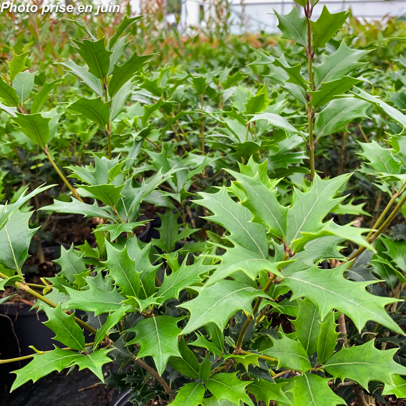 Arbuste persistant au feuillage vert très foncé, rappellant celui du houx, un peu moins épineux. Jeunes pousses pourpre foncé. Floraison d'automne peu importante mais parfumée. Soleil ou mi-ombre. Sol ordinaire sans excès d'humidité. Port érigé s'arrondissant en vieillissant: 2 m x 1. 50 m. Rusticité: - 15°C.