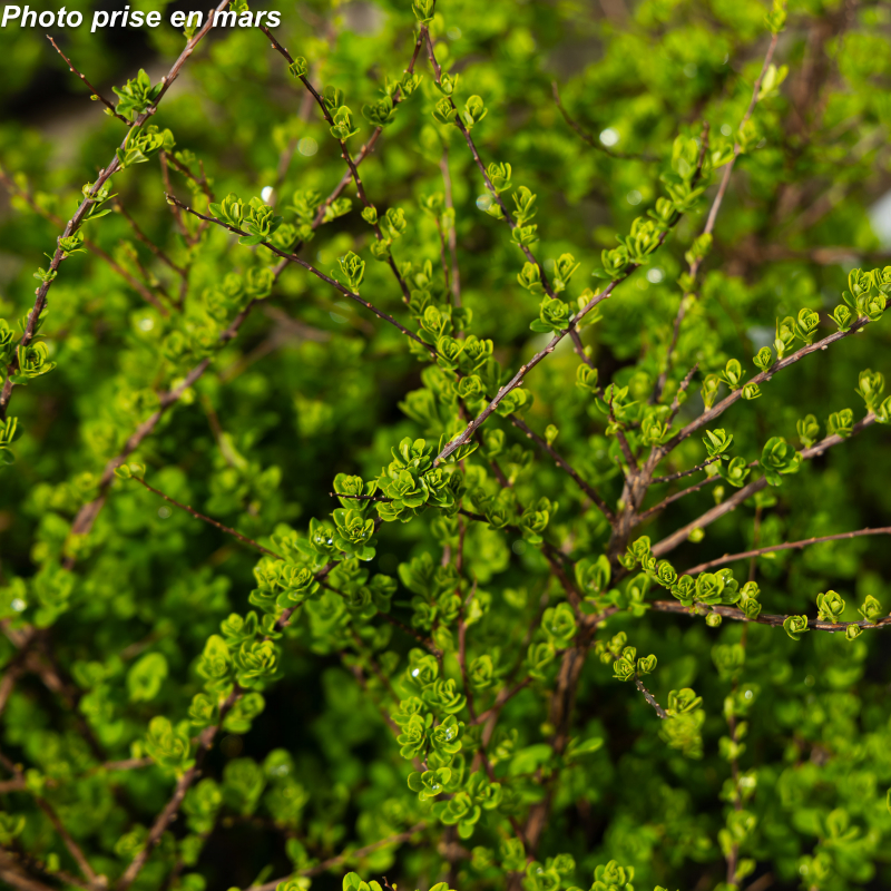 Arbuste caduc au feuillage vert, aux fleurs en ombelles blanches en Avril-mai sur des rameaux fortement arqués. Soleil ou mi-ombre. Sol ordinaire. Port arrondi: 2 m x 1,50 m. Rusticité: -20°C.
