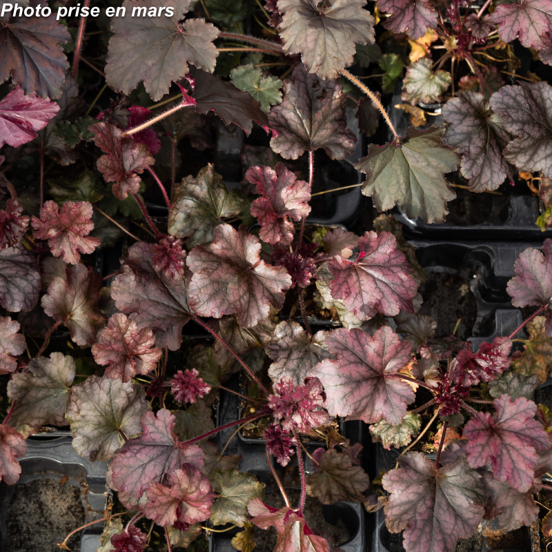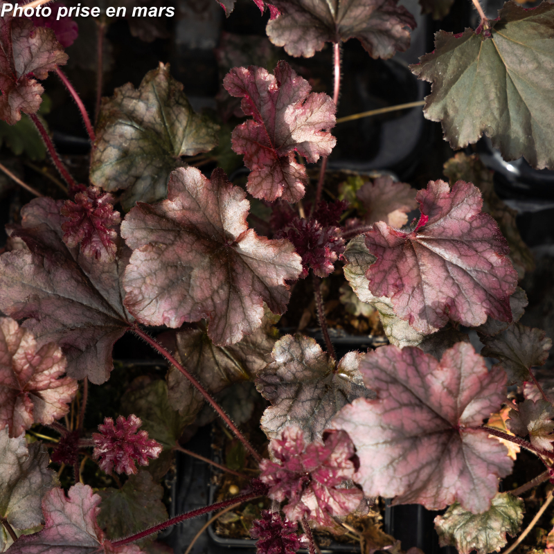 Vivace persistante au feuillage dentelé pourpre très sombre aux fleurs blanches petites en juin juillet sur une tige de 50cm. Soleil ou mi-ombre. Sol sain à frais. Port compact : 0.30 m x 0.30 m.Rusticité : - 15°.