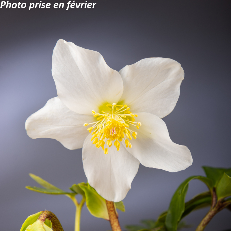 Vivace persistante au feuillage coriace vert. Floraison précoce comme sont nom l'indique. couleur blanc au coeur vert aux étamines jaunes de décembre à mars.
