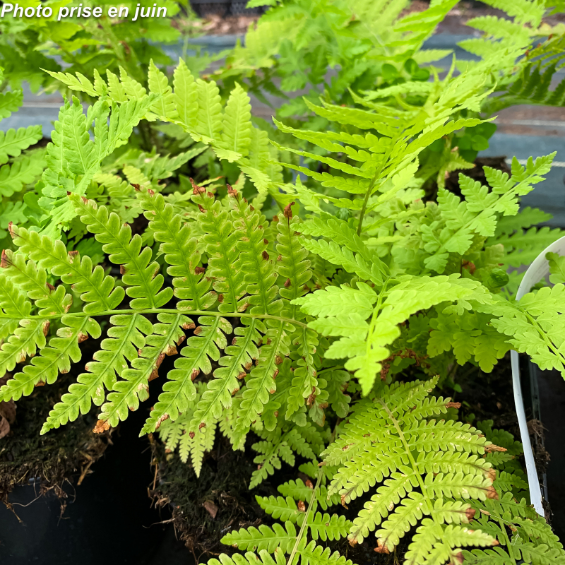 La Matteuccia struthiopteris est une fougère originaire d’Allemagne et d’Autriche où elle est naturellement retrouvée dans les sous-bois. Elle se démarque par ses couronnes dressées en frondes vert clair. Ces dernières sont lancéolées, étroites et peuvent atteindre jusqu’à 1,7 m de long. Ses frondes sont légèrement plumeuses et rappellent les majestueuses plumes d’autruche. Ses feuilles sont caduques et disparaissent en hiver pour mieux revenir au printemps. La fougère d’Allemagne fait partie de la famille des Dryoptéridacées.
