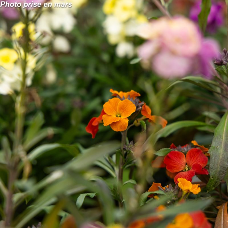 Originaire des zones calcaires, d’Asie centrale, d’Europe méridionale et d’Amérique du Nord, l’Erysimum illumine l’hiver de sa floraison colorée et parfumée. Au printemps, elle donne de petites fleurs saumon, jaunes ou mauves, selon les variétés. Les giroflées s’épanouissent naturellement dans les sols caillouteux, voire sur les murs.