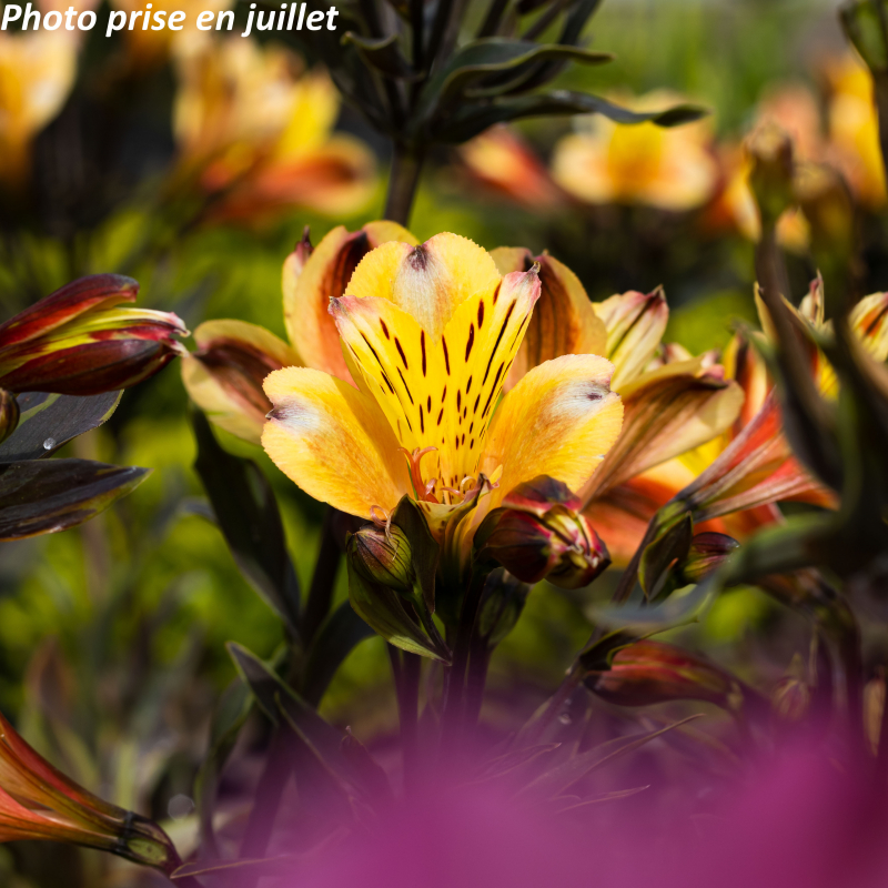 Vivace caduque touffue. à la croissance rapide et au feuillage vert. Longue et abondante floraison estivale. Elégantes fleurs en entonnoir. aux pétales jaune vif tigré d'orange. qui ressemblent à celle des fleurs de lys.