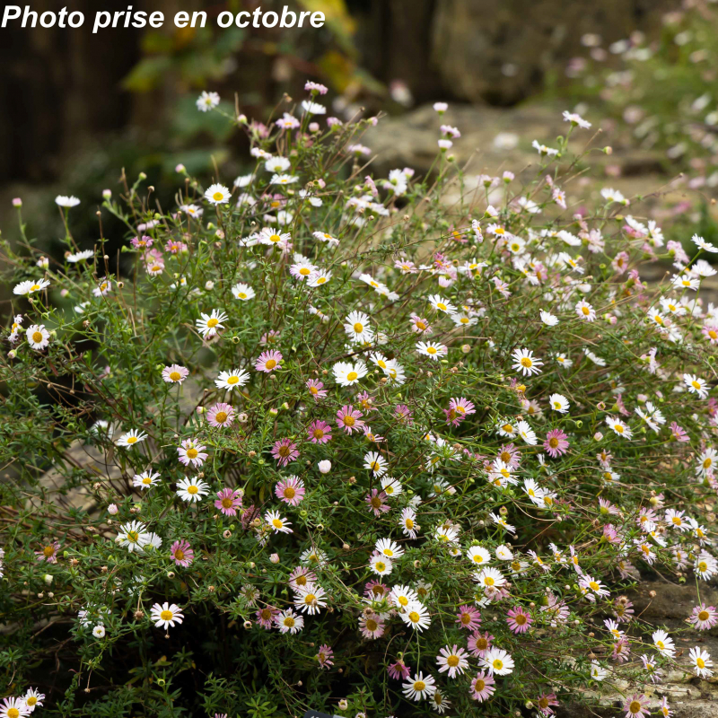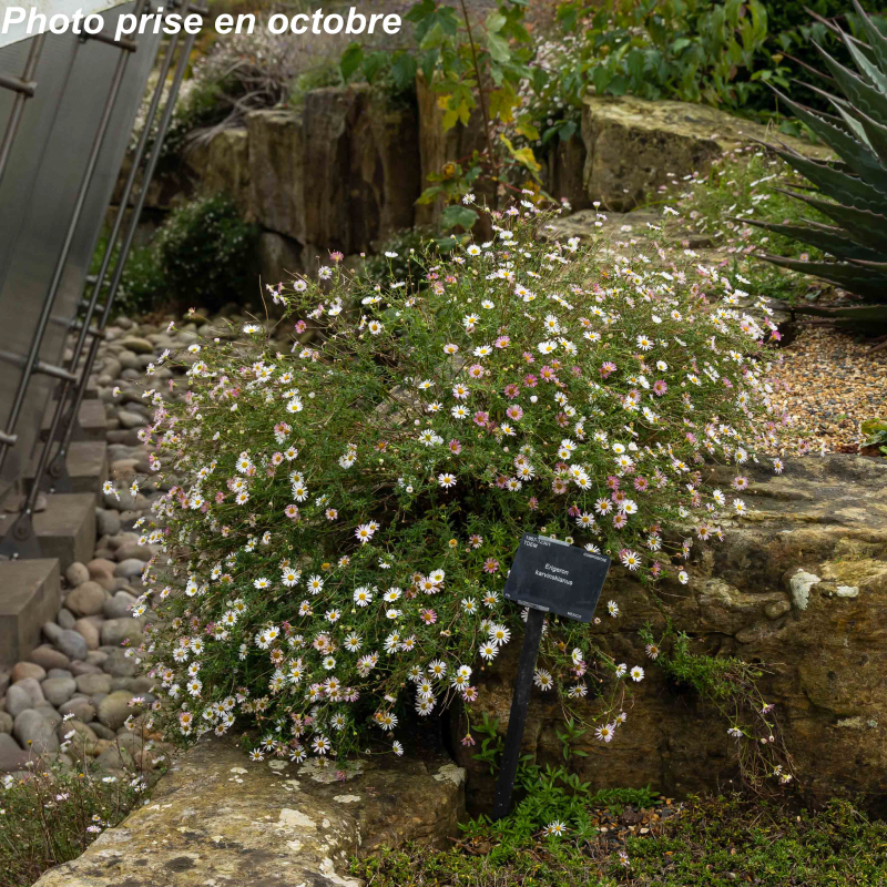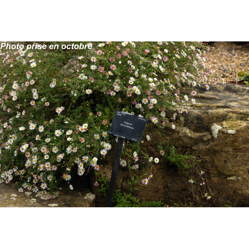 Vivace de rocailles par excellence, la vergerette de Karvinsky s’adapte parfaitement aux sols secs et difficiles désertés par les autres plantes.