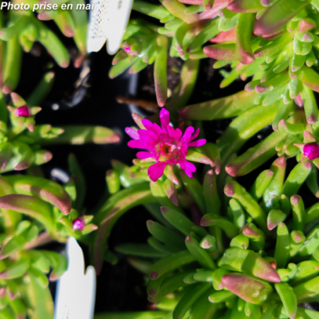 Ces nouvelles variétés ont la particularité de bien résister au froid en plus de tolérer la sécheresse. Vivace tapissante au feuillage persistant coriace vert et aux nombreuses fleurs violet mauve au coeur blanc de mai à octobre.